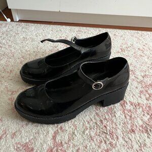 URBAN OUTFITTERS MARY JANE'S. SIZE 9. IN GREAT CONDITION. PATENT LEATHER FINISH WITH A BLOCK HEEL.