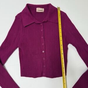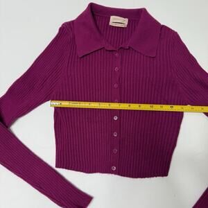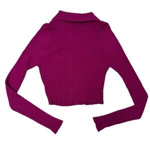 URBAN OUTFITTERS Magenta Pink Ribbed Knit Collared Crop Button up Top Size L