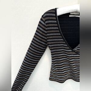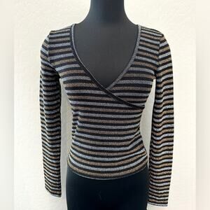 URBAN OUTFITTERS | Metallic Striped Fitted V-Neck Long Sleeve Top | Size Medium