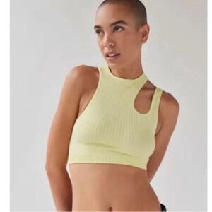URBAN OUTFITTERS NEON RIBBED SEAMLESS ASYMMETRIC CUT OUT CROP SIZE M/L