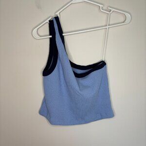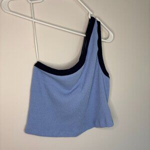 URBAN OUTFITTERS NEW Cropped 1 Shoulder Top Womens L Blue Navy Ribbed Stretch