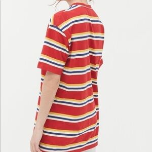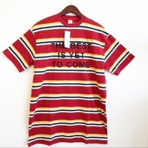 Brand New “The Best Is Yet To Come” Graphic Front Striped Top from Urban Outfitters. This Striped Top has an oversized, longer fit. Brightly colored stripes in Red, Yellow, Navy and White. Front Graphic with Navy text. Crew neck collar and made with a. Sry soft 100 % Cotton knit fabric. Super cute, Woman’s Size Large / Extra Large