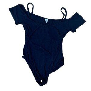 URBAN OUTFITTERS Out From Under Ribbed Off Shoulder Body Suit Black Size Small