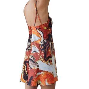URBAN OUTFITTERS Pretty Please Silky Cut Out Mini Dress in Warm Toned Marble NWT