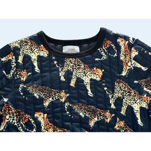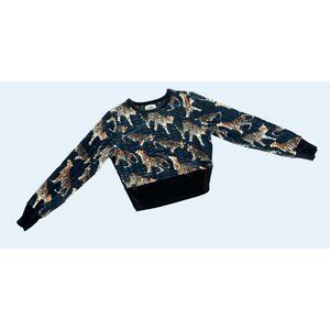 Nice cropped sweatshirt by Urban Outfitters. Quilted printed mesh with ribbed banding at the crew neck, cuffs, and wide hem. Big cat print allover. Pullover style. 100% polyester. Size medium. Pre-owned and gently worn in really nice condition!