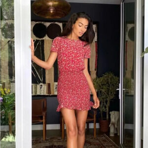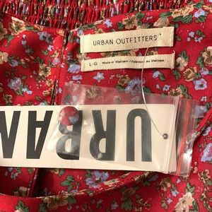 URBAN OUTFITTERS Shirred Skirt Mini Dress in Red Rouge Motif