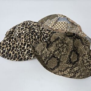 URBAN OUTFITTERS UO-76 COTTON BUCKET HAT LOT OF 3 QUILTED CHEETAH SNAKE WOMEN OS