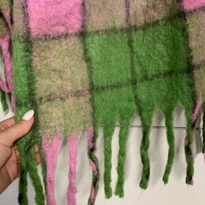 URBAN OUTFITTERS WOMENS GREEN PINK CHUNKY SOFT SCARF