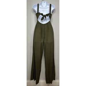 URBAN OUTFITTERS Wide Leg Linen Jumpsuit S Olive Green Tie Back Vest Fit Boho