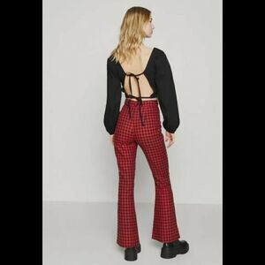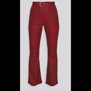 URBAN OUTFITTERS Milk It Size 16 Red Black Gingham Flares Trousers W/Buckle Belt