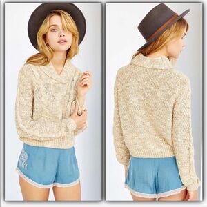 Chunky cable knit Irish fisherman style wool blend shawl collar pullover by BDG size L. Cut in a slouchy silhouette for an effortlessly cozy look. NEW!! Photo credit to UO. Acrylic & wool blend.