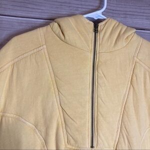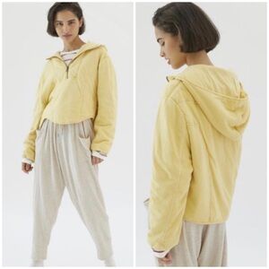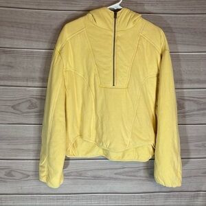 In excellent used condition no rips, tears or stains. Lightweight hoodie sweatshirt by Out From Under. Made from a cozy, quilted cotton in a relaxed pullover design. Topped with a half-zip placket, elastic cuffs and asymmetrical front hem. Middle is filled a soft polyester, soft plush feel. Great lounge wear.