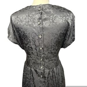 Perfectly flowy midi dress by Urban Renewal, crafted from sustainably-sourced remnant fabric rolls. Jacquard floral fabric is cut with a deep v-neck and fluttery short sleeves and button back! Preowned and in excellent condition!