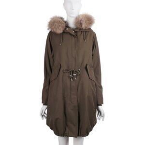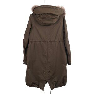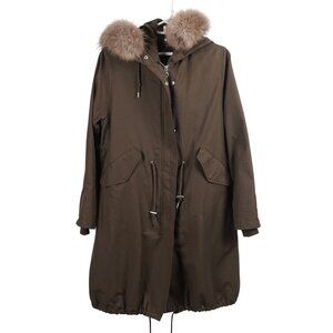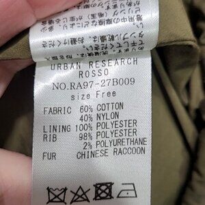 URBAN RESEARCH Rosso Women Jacket M/L Green Hooded Raccoon Fur Trim Anorak Parka