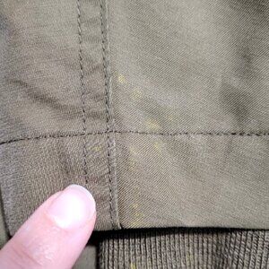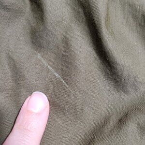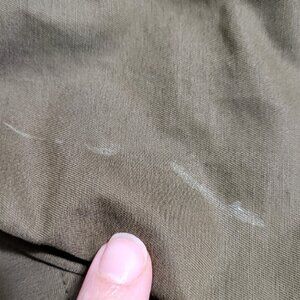 Very good preowned condition; no holes or rips. Fabric has minimal wear. Marks on sleeves & front hip (last pics).