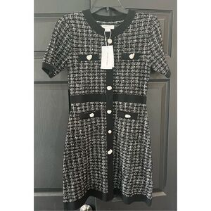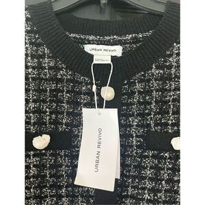 URBAN REVIVO Women's Sweater Dress Knit Tweed Dress Short Sleeve Pearl Button