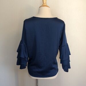 URBAN ROMANTICS Women's Medium Deep Blue Satin Crop Top w/ Bell Sleeves Boho