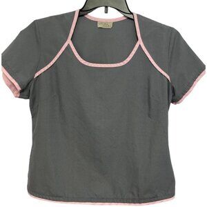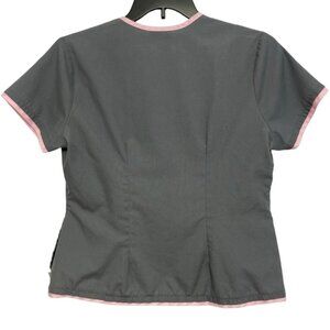 URBANE SCRUBS ~ Women's charcoal grey scrub top with pink trim. Side slash pockets.