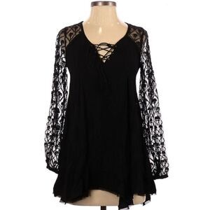 SUPER CUTE SHORT MINI DRESS (COULD BE WORN AS FLOWY SHIRT OR TUNIC ALSO) SHEER LACE W EMBROIDERY ON ARMS AND BACK, TIE/LACE UP NECKLINE WITH TASSELS - GORGEOUS 😍