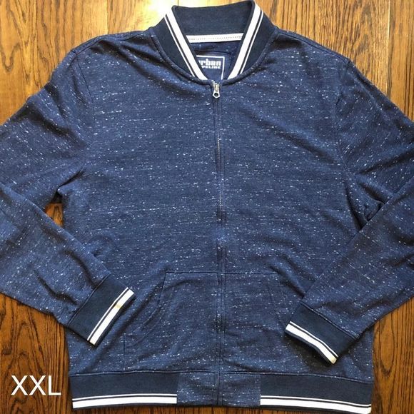 URBAN PIPELINE Mens Blue Speckled Full Zip Jacket Striped Collar Cuff Hem XXL