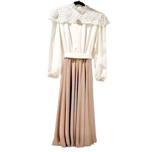 ππΌ URSULA OF SWITZERLAND ULTRA RARE 70s Cream Lace & Beige Chiffon Maxi Dress Sz 10
