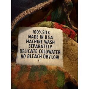 I have collected URU clothes since I first ran into them in Big Sur when they were made in Kristin St Arrix front yard! This is a gorgeous layered silk piece with stunning earth tone colors. It is a abstract floral, extremely lightweight. It’s unusual and you won’t find anybody else wearing anything like this. This will fit a range of sizes. Please see measurements. Machine washable. .com excellent preowned condition no flaws noted