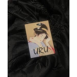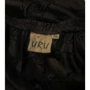 URU Women's XL Black Silk Floral Embroidered Wide Leg Roomy Pull On Pants NWT