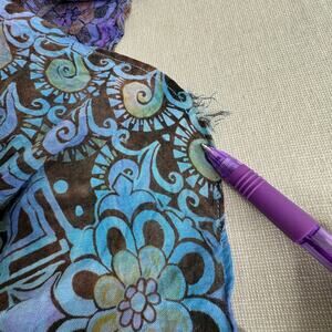 URU rayon dress hand dyed. 100% rayon. Unique patterned, patch front pockets. Pullover no closure. Full skirt. Slight wear on hem.