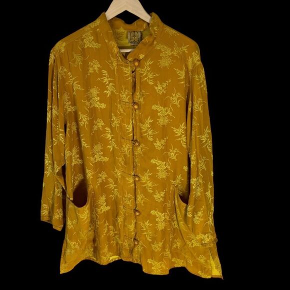 URU By Kristine St. Erik Vintage Mustard Gold Jacquard Tunic Jacket One Size