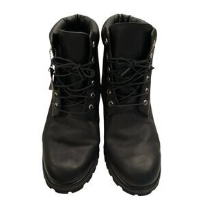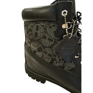 US 13W MEN'S BLACK TIMBERLAND PREMIUM LEATHER WATERPROOF BOOTS LOGO SIDE