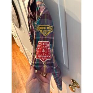 Measures 21-1/2” pit to pit and is 28” long.