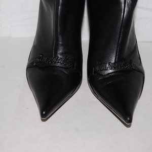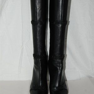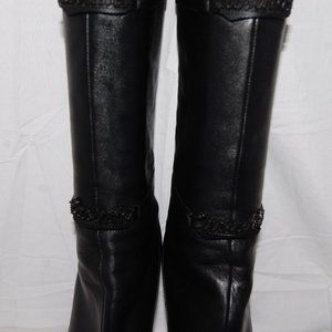 US 7❤️ CASADEI Black Real Leather Knee High Heel Tall Pointed Boots ITALY OTK