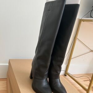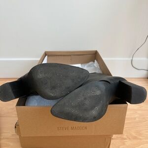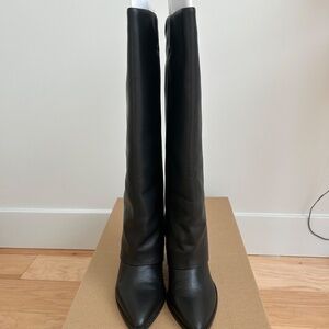 Gently Worn Steve Madden Blanco fold over knee high black leather Boots. A staple for fall and winter.