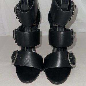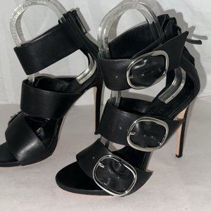US 8❤️AMINAH ABDUL JILLIL Black Real Leather High Heel Ankle BOOTS Bootie ITALY