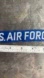 Pulled from a jacket and has a slight starchy feel, tried capturing that with the bending of piece. Fully woven on blue, the white reads U.S. AIR FORCE