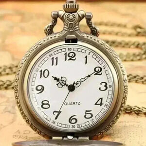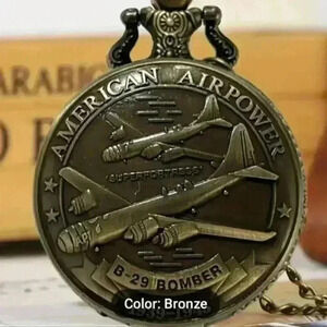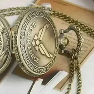 Bronze toned U.S. Airforce quartz pocket watch with a chain.