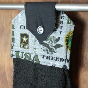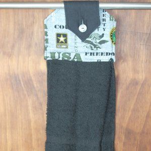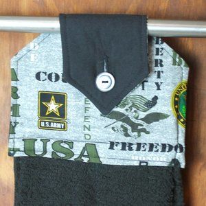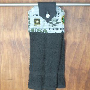 U.S ARMY HAND TOWEL GREEN BLACK GRAY PRINT HANDMADE HANGING KITCHEN BLACK COTTON