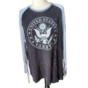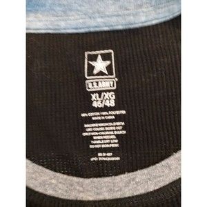 The black sweatshirt features a solid pattern and pullover closure. It's sized XL and has a regular fit. It's a vintage item, but still in great shape. The sweatshirt is branded with the U.S. Army logo and is perfect for anyone who loves the Army or is looking for a stylish and comfortable sweatshirt.