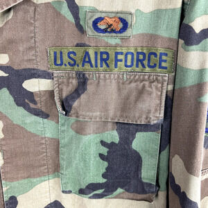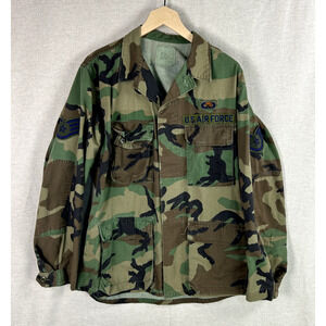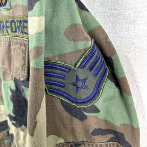 US Air Force Mens Button Up Camouflage Jacket Size M Regular Sergeant Patches