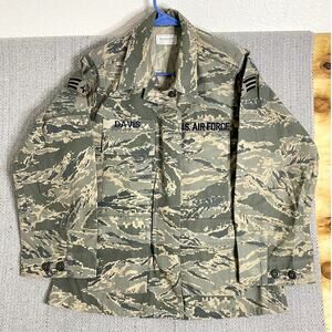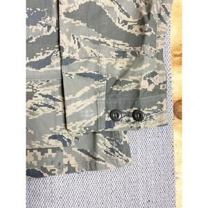 Get ready to take flight with this stylish U.S. Air Force women's utility coat! This unique piece features a cool stripe camo pattern and personalized patches, adding a touch of individuality to your wardrobe. Perfect for adding an edgy and fashionable touch to any outfit. The X-Short length provides a flattering fit, while the durable construction ensures long-lasting wear. Whether you're a proud Air Force supporter or simply love unique outerwear, this coat is sure to impress. Size: 6 X-Short - Stripe camo pattern - Personalized patches - Durable construction - X-Short length Good Pre Owned Condition. Size Tag Can Differ on Used Clothing. Check Measurements Pictured. Colors may appear different on different Devices.