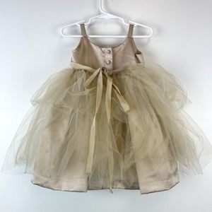 US Angels (18M 18 Mos) Flower Girl Satin Tulle Dress in Champagne Beige Wedding
