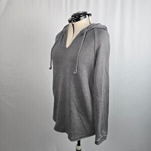 U.S. Apparel Hooded Sweatshirt Women's XL Gray V-Neck Raw Hem Long Sleeve NWT