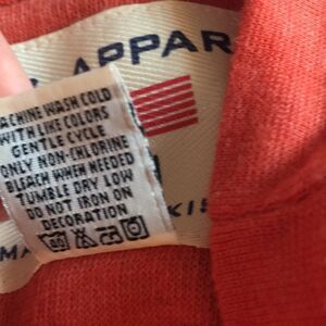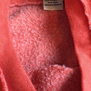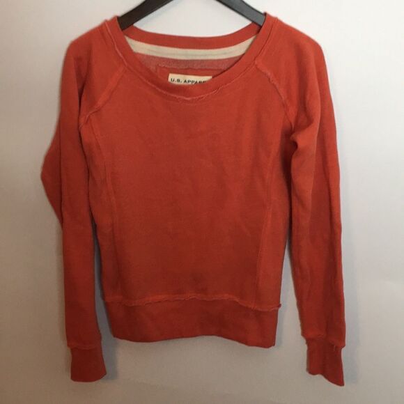 U.S. Apparel raglan raw edged lightweight sweatshirt. In excellent used condition. Cotton polyester blend. Beautiful styling details on this piece and the perfect weight for spring and summer! Color is accurate in photos. To me it’s a muted corral color, almost terra cotta. More orange than pink. I love the raw edge details on this sweatshirt, such a classic style and adds interest to this sweatshirt. And super soft fleece lining makes this super cozy, even though this is a lightweight sweatshirt. Measurements are in photos. Budget friendly piece makes this the perfect piece to bundle and save. I do an automatic discount on all bundle orders.