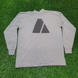 US Army APFU long sleeve physical training shirt in heather grey with ARMY front and reflective back graphic, men’s large, clean athletic look