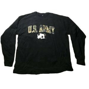 U.S. Army Black with Camo Text Long Sleeve T- Shirt Size Large