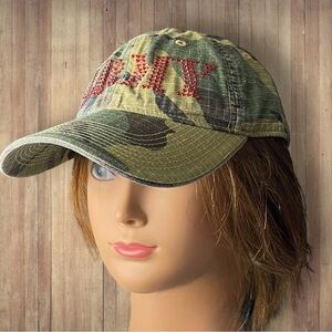 US Army Hat Velcro Strapback Green Camouflage with Red Rhinestones Baseball Cap.