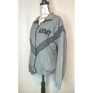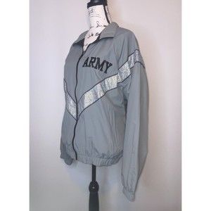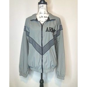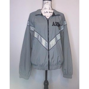 US Army Lg Gray Physical Fitness Uniform Full Zip Windbreaker Training Jacket