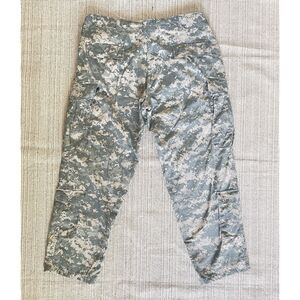 Authentic US Army combat trousers in the ACU digital camouflage pattern. Size Large Short (waist 35-39", inseam 28.5-29.5"). Durable military-grade material with reinforced seat and knees, multiple cargo pockets, and button fly. Perfect for tactical use, outdoor adventures, airsoft, cosplay, or collectors of military surplus. Ideal for hiking, camping, hunting, or military enthusiasts.