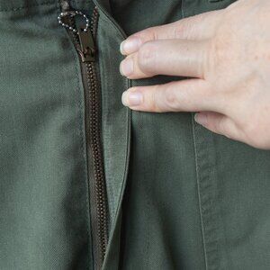US Army Vintage 70s Trousers Olive Green OD High Waist Taper Leg Crop Leg pants, size 30. This vintage 70s army trouser is a classic high waist infantry / military pant with deep pockets and a cropped tailored fit. They have an ultra high waist that is reminiscent of mid century style and were used in active duty.