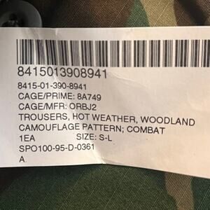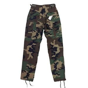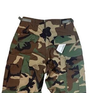 Brand new with tags U.S. Army buttonfly woodland camo combat trousers pants. Green, tan, brown. Adjustable waist and length.